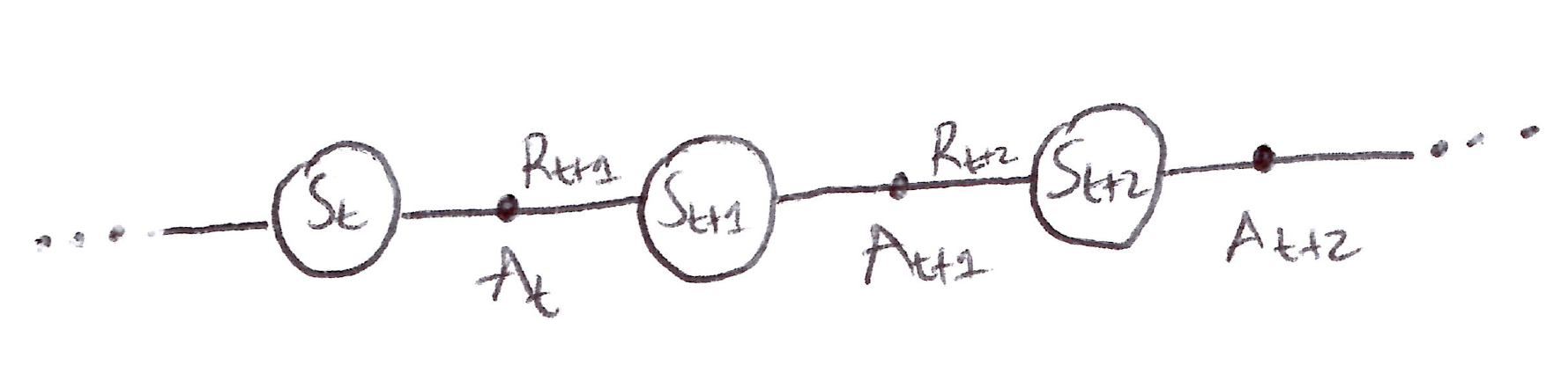 A_{t+1} \sim \mu(\cdot | S_t)