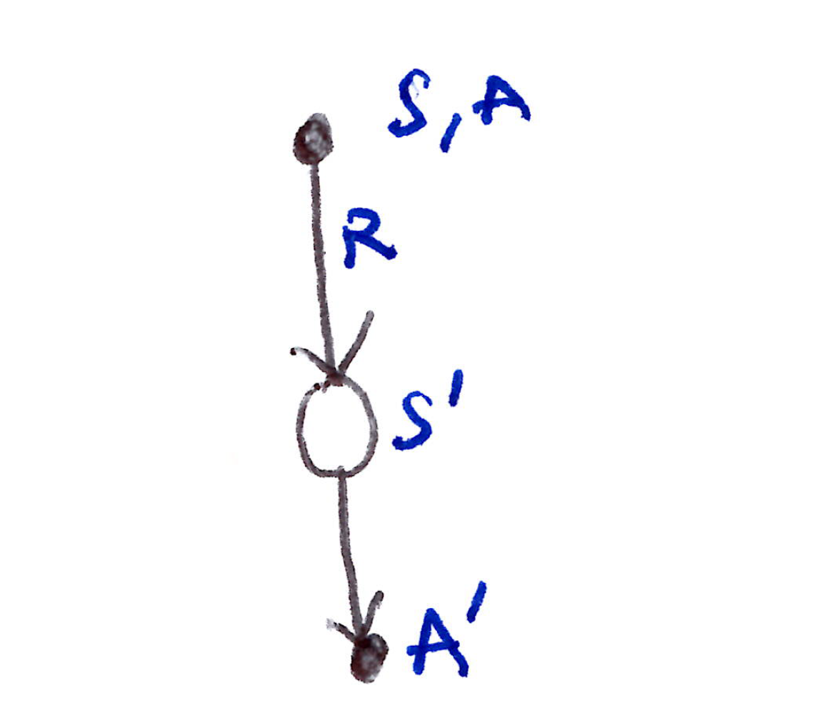 Take action A, observe R, S'
