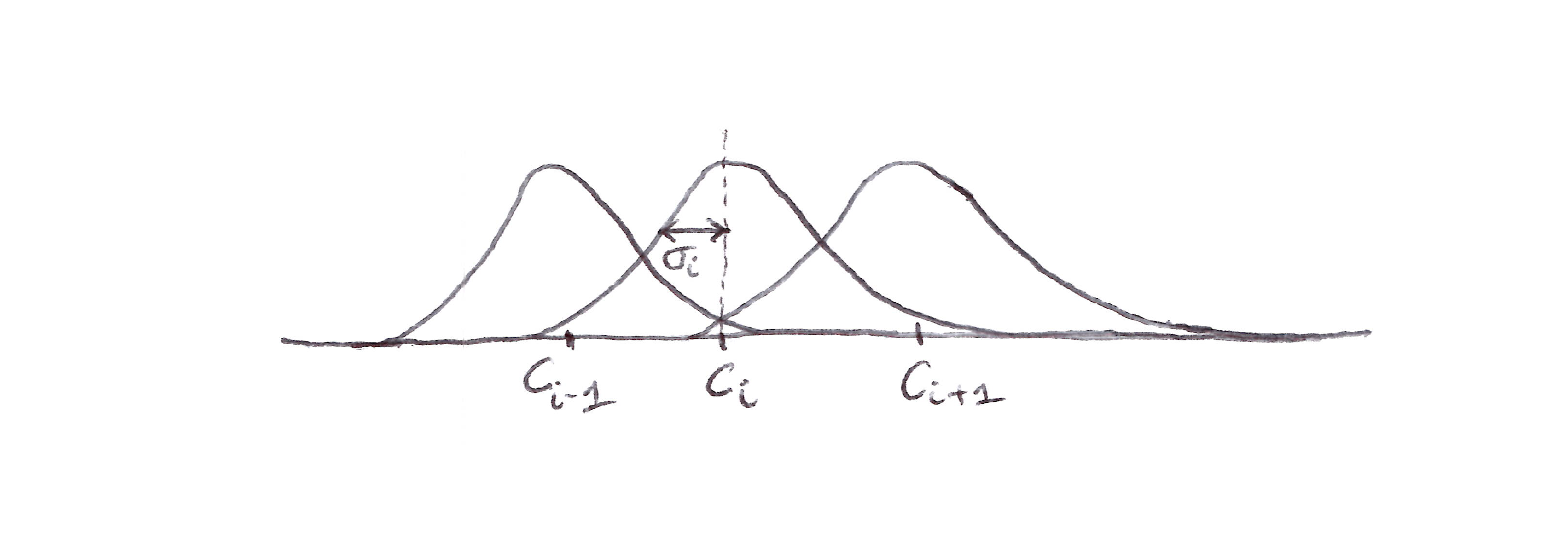 - It is memory-based \Rightarrow RBFs are centered on the states of the stored examples.