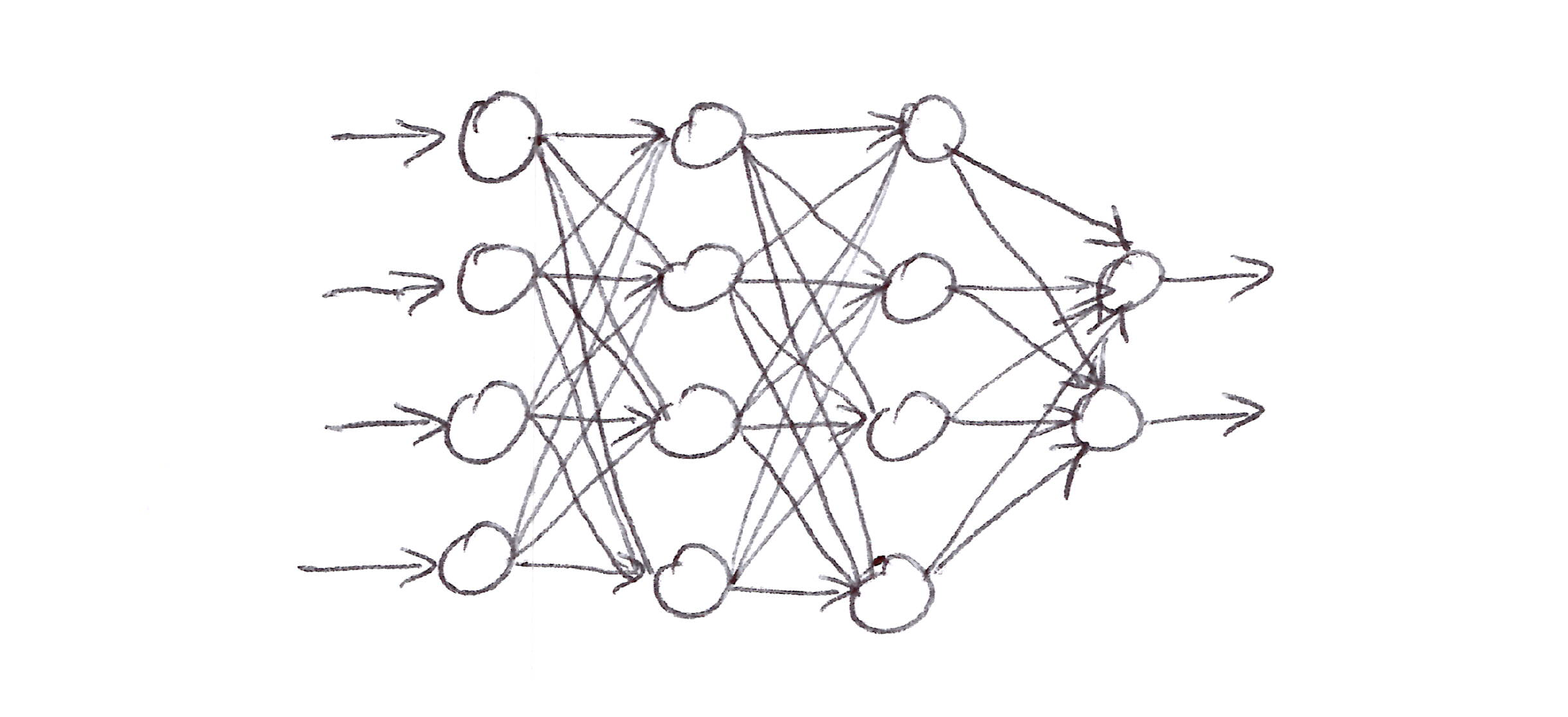 ANN: A generic feedforward ANN with 4 input units, 2 output units, and 2 hidden layers.